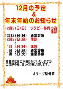 2025.12.01 | Category: お休み・時短診療案内,お知らせ,新着情報